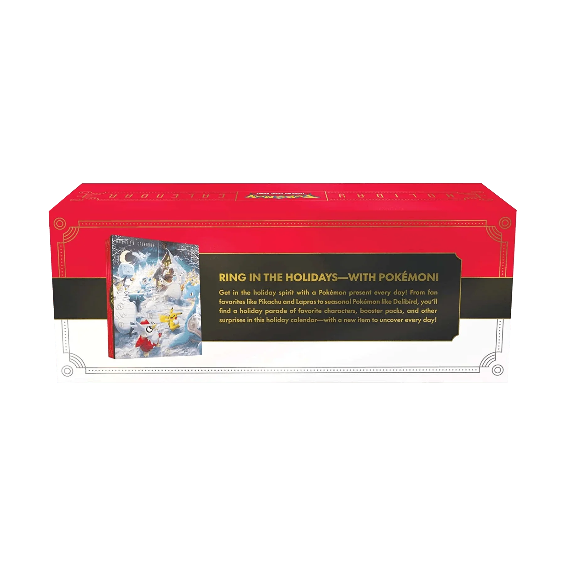 Get in the holiday spirit with a Pokémon present every day! There's no better way to enjoy the season than to celebrate it daily with some of your favourite Pokémon. From fan favourites like Pikachu and Lapras to the gift-toting Delibird, you'll find a parade of Pokémon fun, booster packs, and other surprises in this holiday advent calendar. There's a new item to uncover each day!